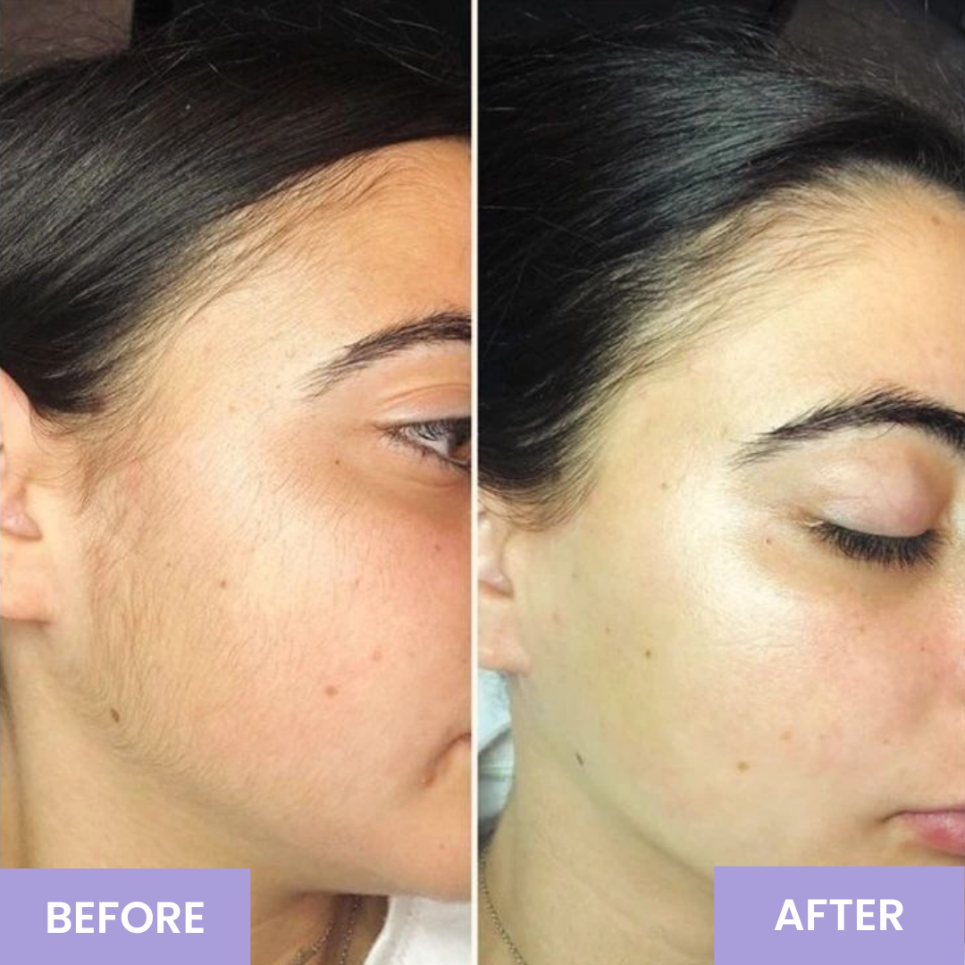 In our consumer testing, 100% of participants reported that NUMEA effectively removed peach fuzz. Using our proprietary Sonic Technology and upgraded Microfine Edge, NUMEA gently and safely removes peach fuzz while simultaneously exfoliating dead skin cells. The result is smooth, radiant, fuzz-free skin. Your hair will not grow back thicker or darker. NUMEA works only on the surface of the skin and does not affect the hair follicle, ensuring that your peach fuzz grows back exactly the same.